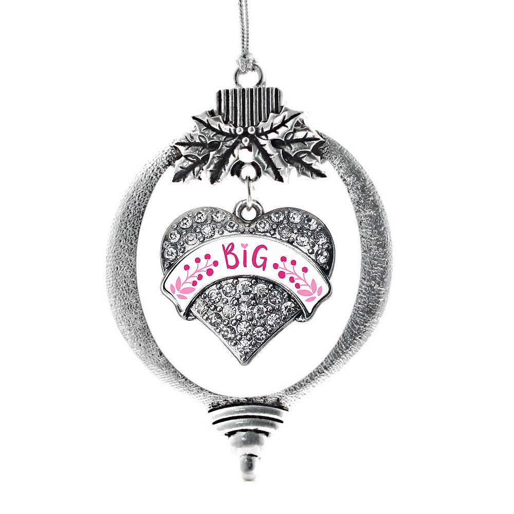 Our sparkling holiday ornament, equipped with a stylish silver rope and the Fuchsia and Rose Big pave heart charm, is crafted from white metal with a silver plated finish and accented with cubic zirconia stones.