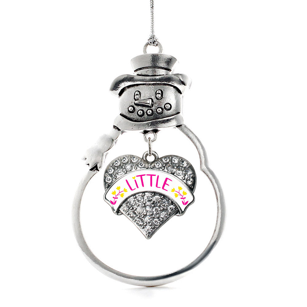 Our sparkling snowman ornament, equipped with a stylish silver rope and the Fuchsia and Yellow Little pave heart charm, is crafted from white metal with a silver plated finish and accented with cubic zirconia stones.