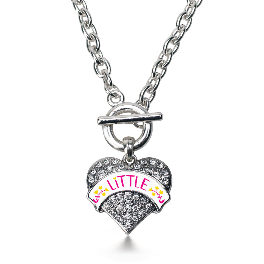 Our sparkling toggle necklace, equipped with a stylish toggle clasp and the Fuchsia and Yellow Little pave heart charm, is crafted from white metal with a silver plated finish and accented with cubic zirconia stones.