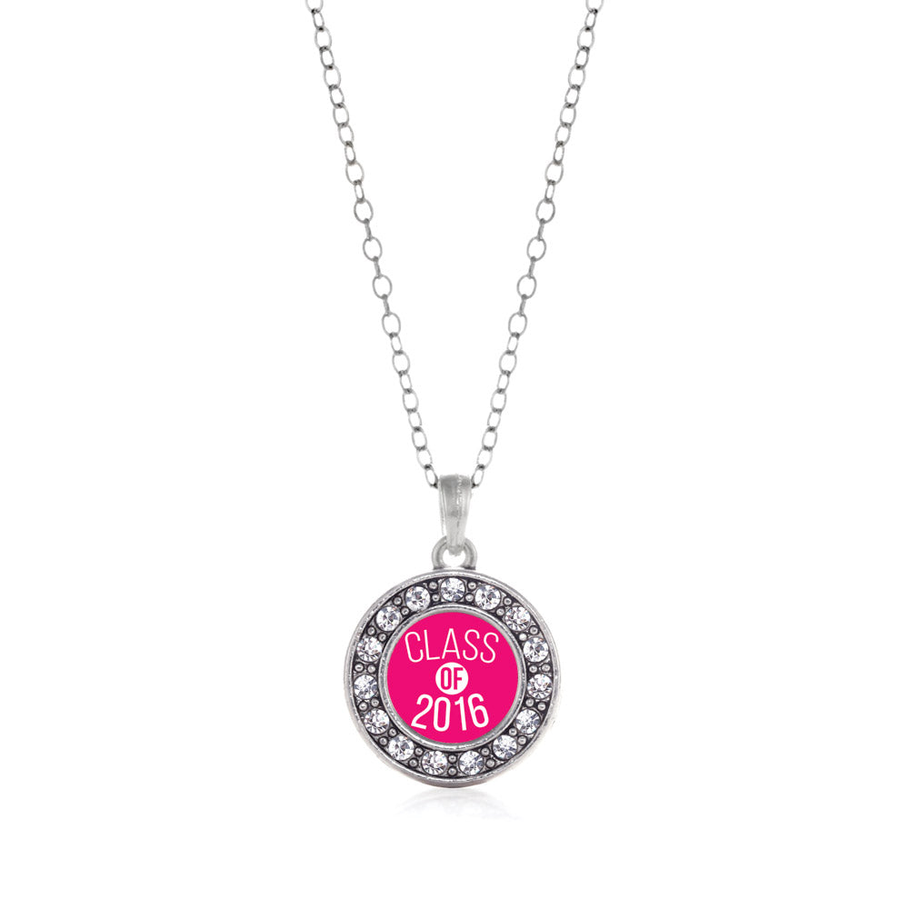 Silver Fuchsia Class of 2016 Circle Charm Classic Necklace