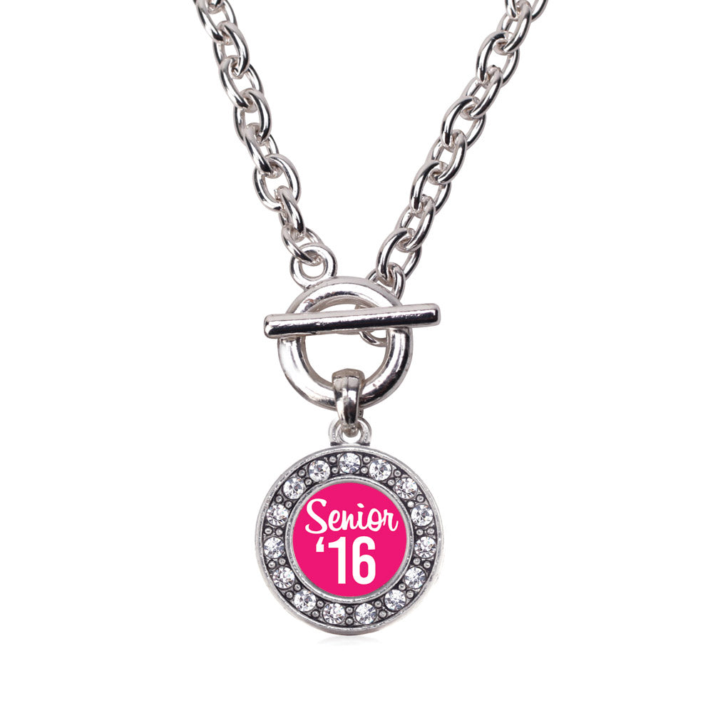 Silver Fuchsia Senior '16 Circle Charm Toggle Necklace