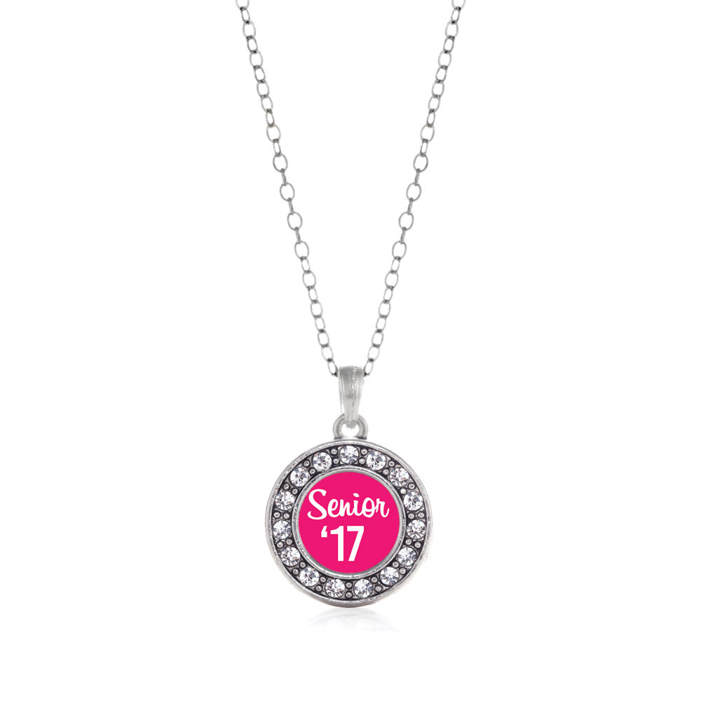 Silver Fuchsia Senior '17 Circle Charm Classic Necklace