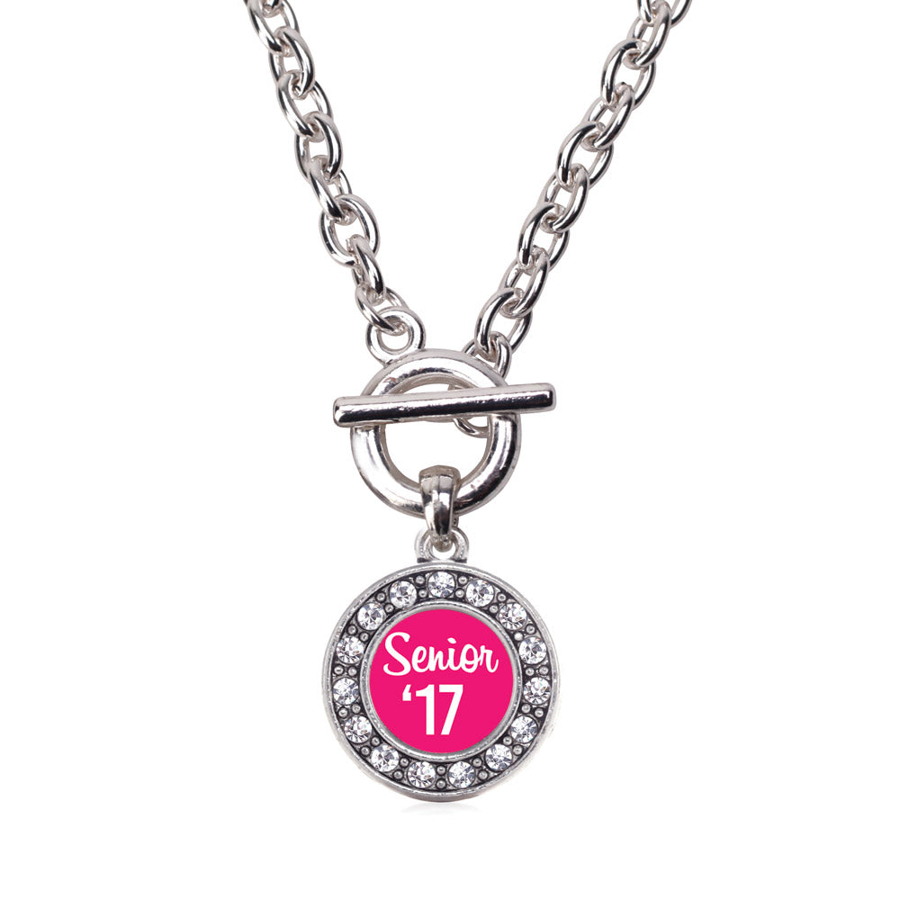Silver Fuchsia Senior '17 Circle Charm Toggle Necklace