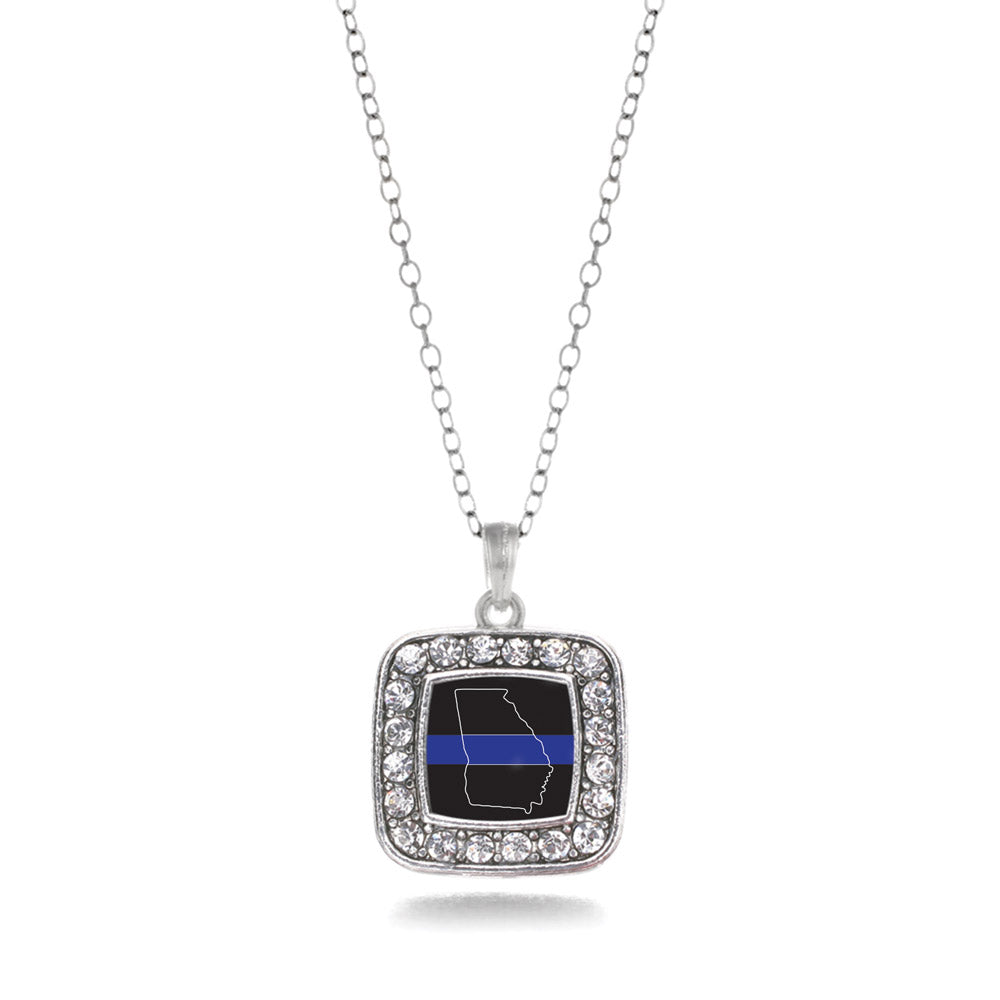 Silver Georgia Thin Blue Line Square Charm Classic Necklace