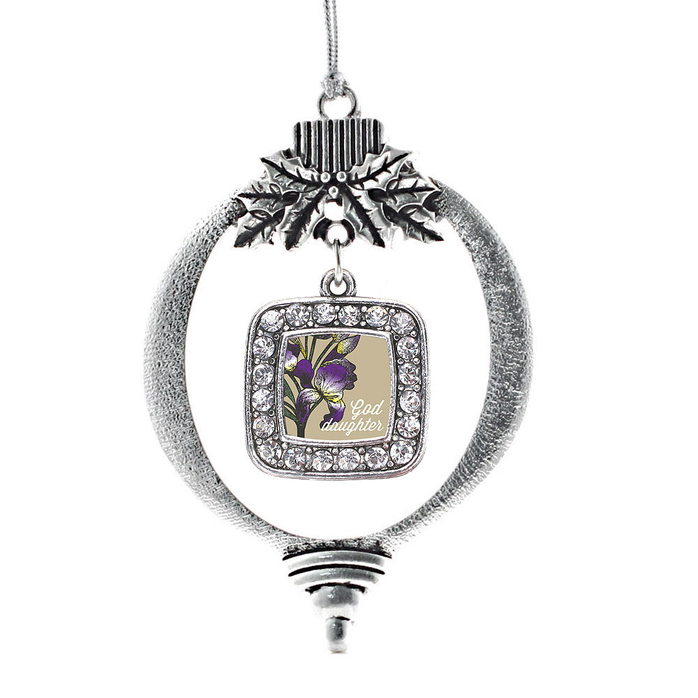 Silver God Daughter Iris Flower Square Charm Holiday Ornament