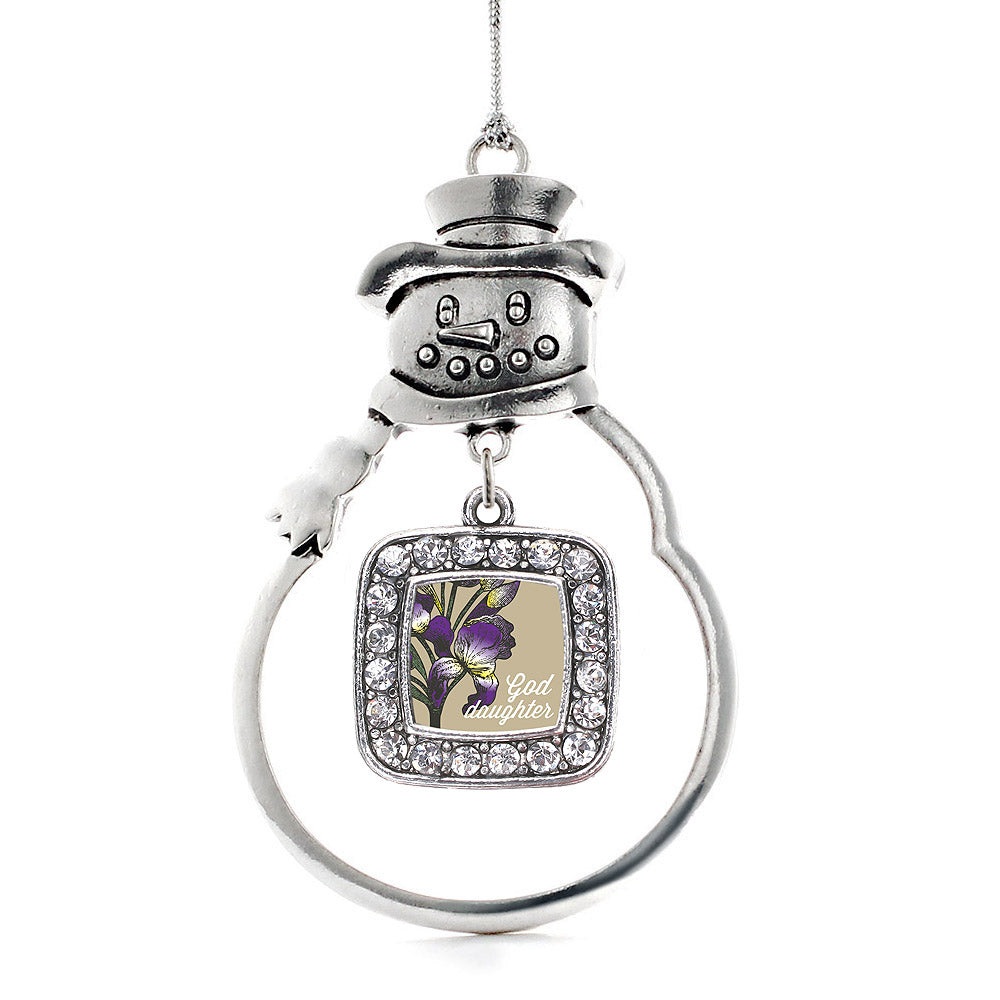Silver God Daughter Iris Flower Square Charm Snowman Ornament