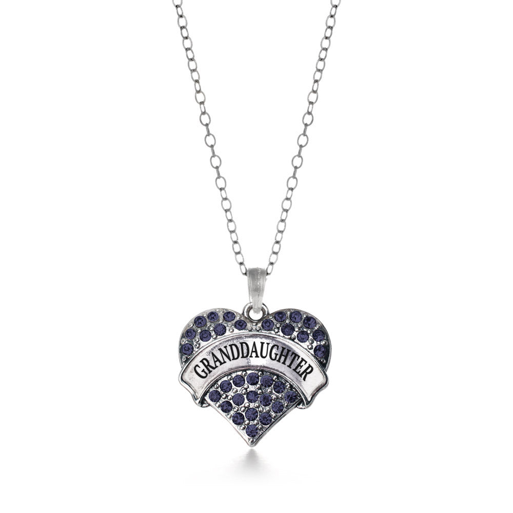 Silver Granddaughter Navy Blue Blue Pave Heart Charm Classic Necklace