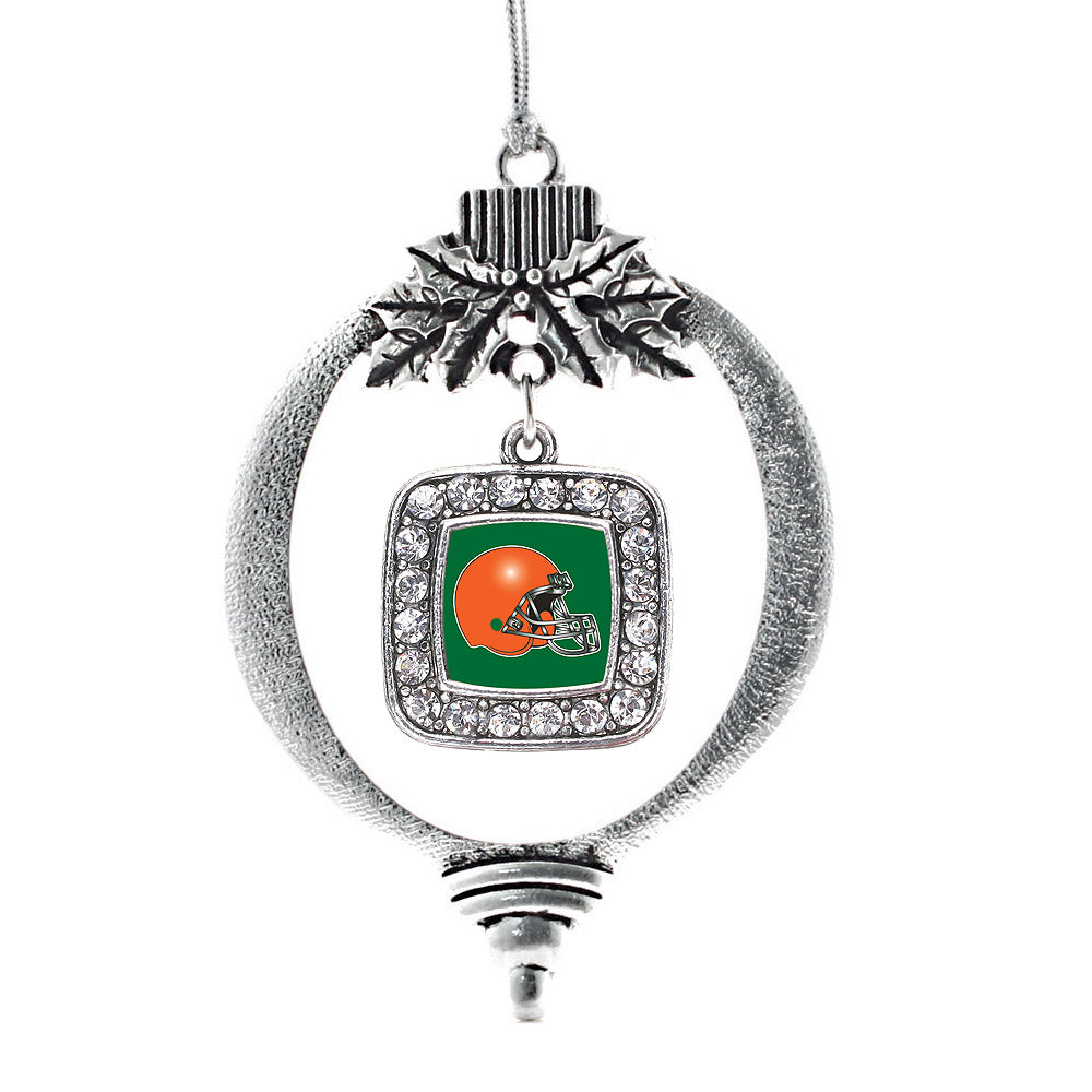 Silver Green and Orange Team Helmet Square Charm Holiday Ornament