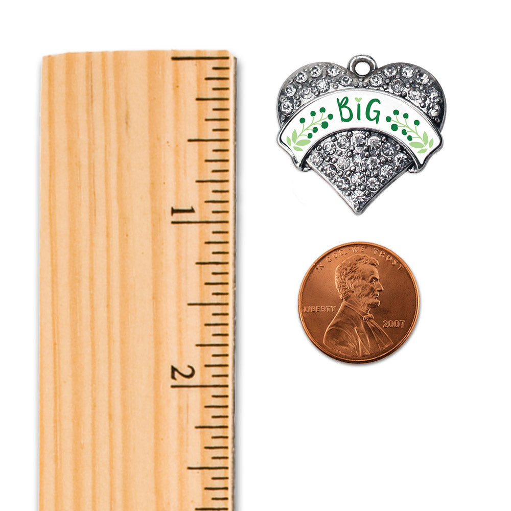 Our sparkling snowman ornament, equipped with a stylish silver rope and the Green and White Big pave heart charm, is crafted from white metal with a silver plated finish and accented with cubic zirconia stones.