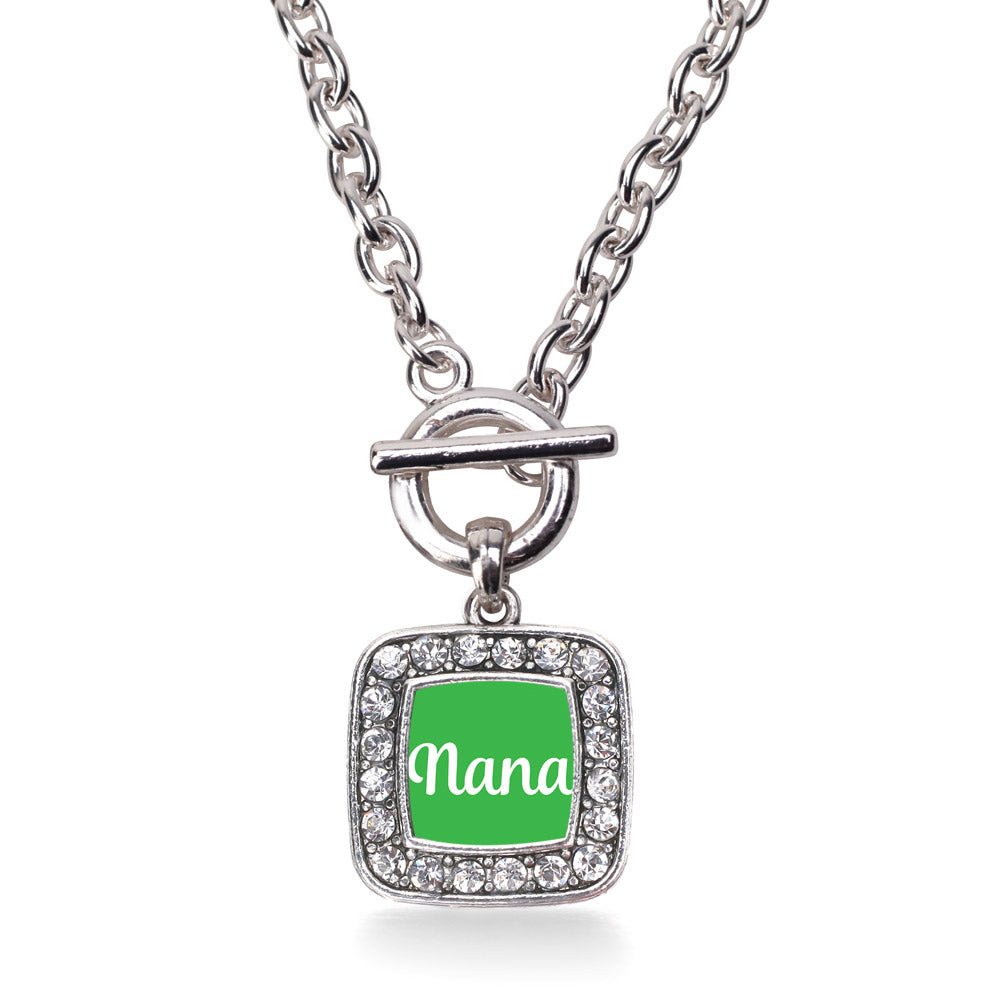 Our sparkling toggle necklace, equipped with a stylish toggle clasp and the Green Nana square charm, is crafted from white metal with a silver plated finish and accented with cubic zirconia stones.
