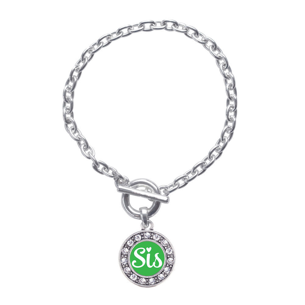 Silver Green Sis Circle Charm Toggle Bracelet