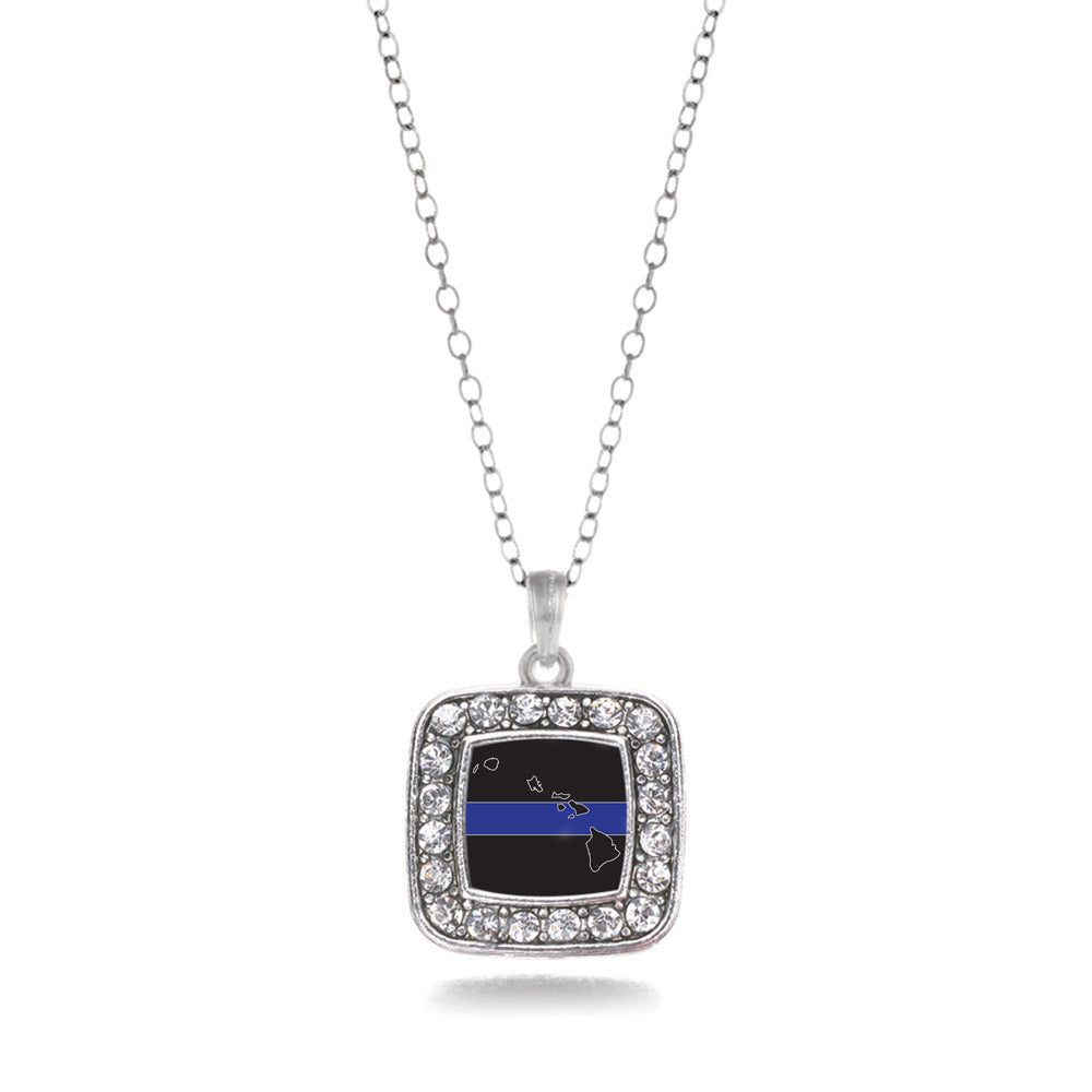 Silver Hawaii Thin Blue Line Square Charm Classic Necklace