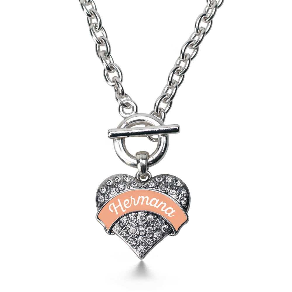 Silver Hermana - Peach Pave Heart Charm Toggle Necklace
