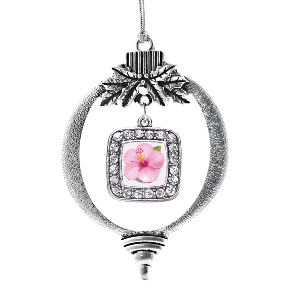 Our sparkling holiday ornament, equipped with a stylish silver rope and the Hibiscus Flower square charm, is crafted from white metal with a silver plated finish and accented with cubic zirconia stones.