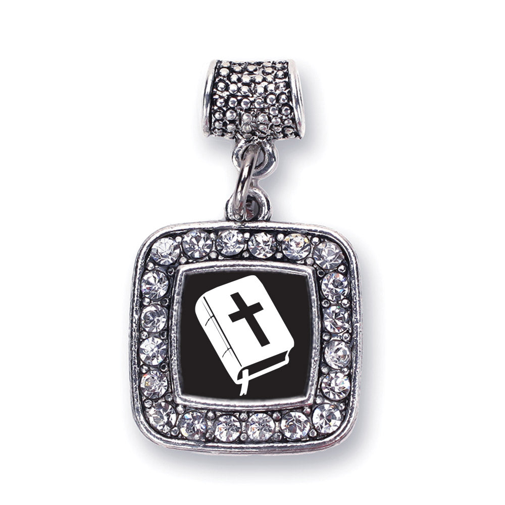 Our sparkling memory charm, equipped with a stylish charm attachment ring and the Holy Bible square charm, is crafted from white metal with a silver plated finish and accented with cubic zirconia stones.