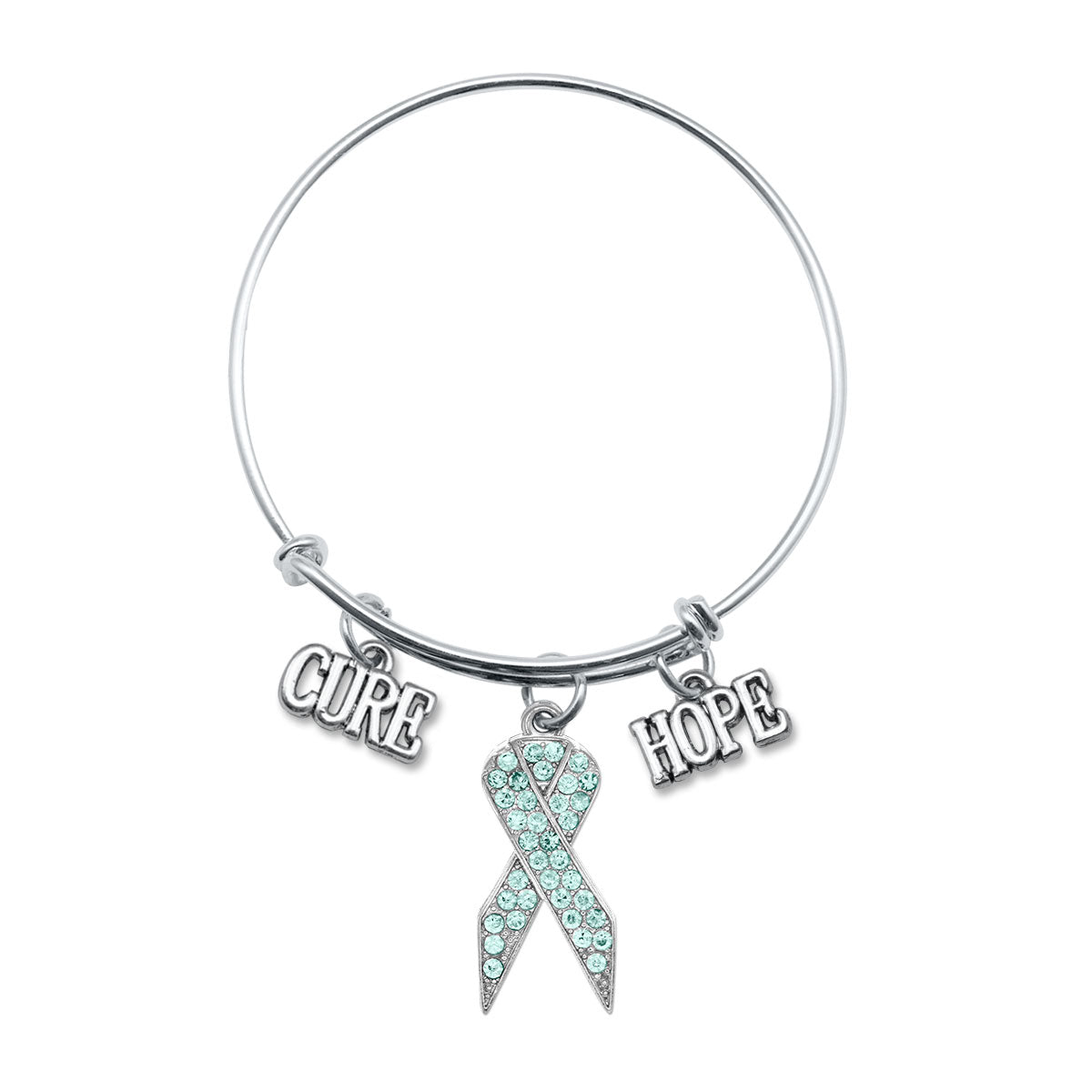 Silver Hope Aqua Awareness Ribbon Charm Wire Bangle Bracelet