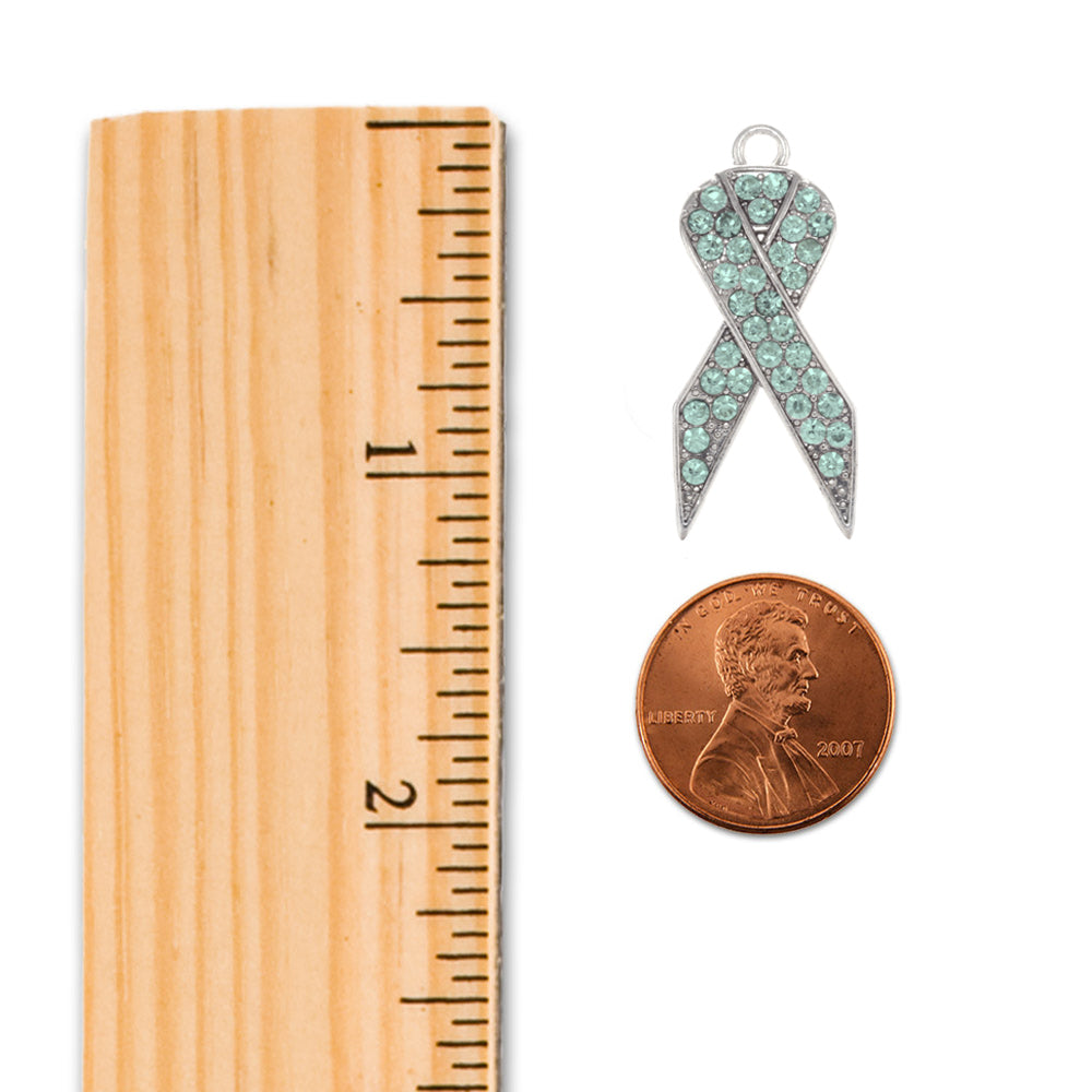 Our sparkling wire bangle bracelet, equipped with the Hope Aqua Awareness Ribbon charm, is crafted from white metal with a silver plated finish.