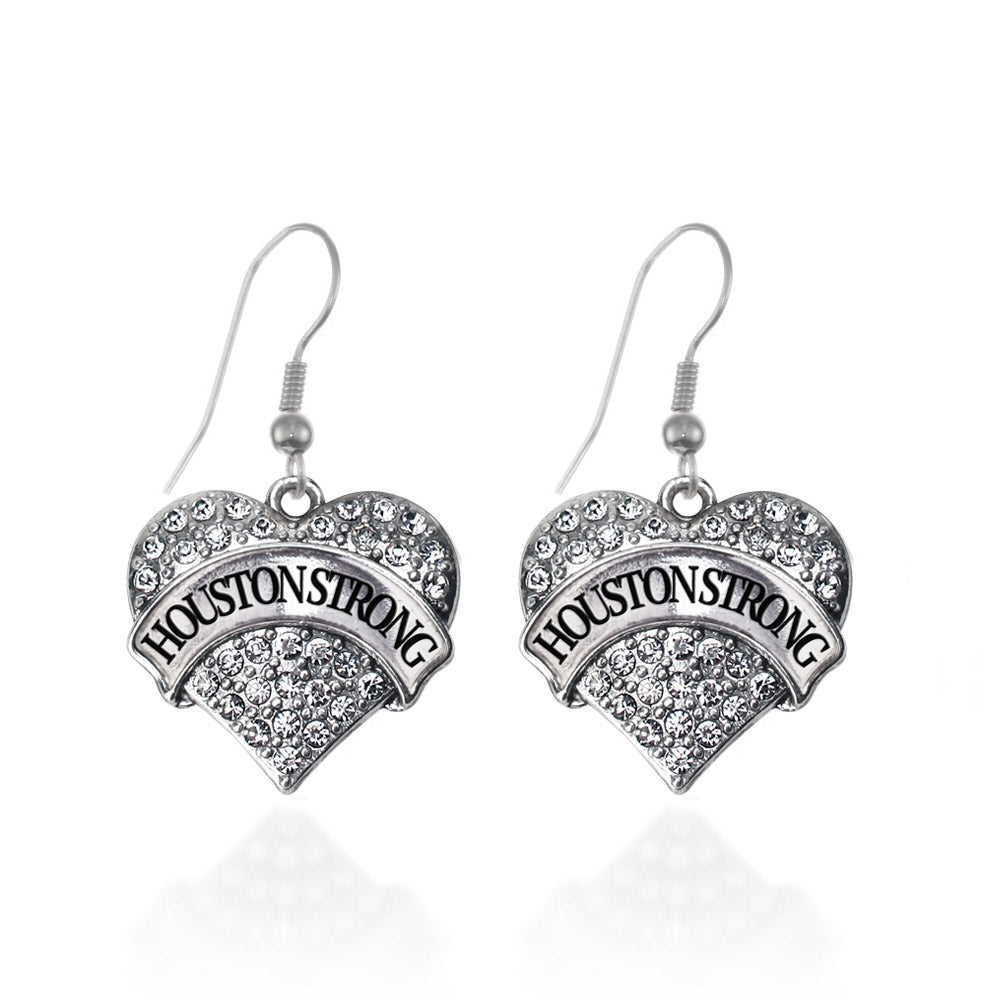 Silver Houston Strong Pave Heart Charm Dangle Earrings