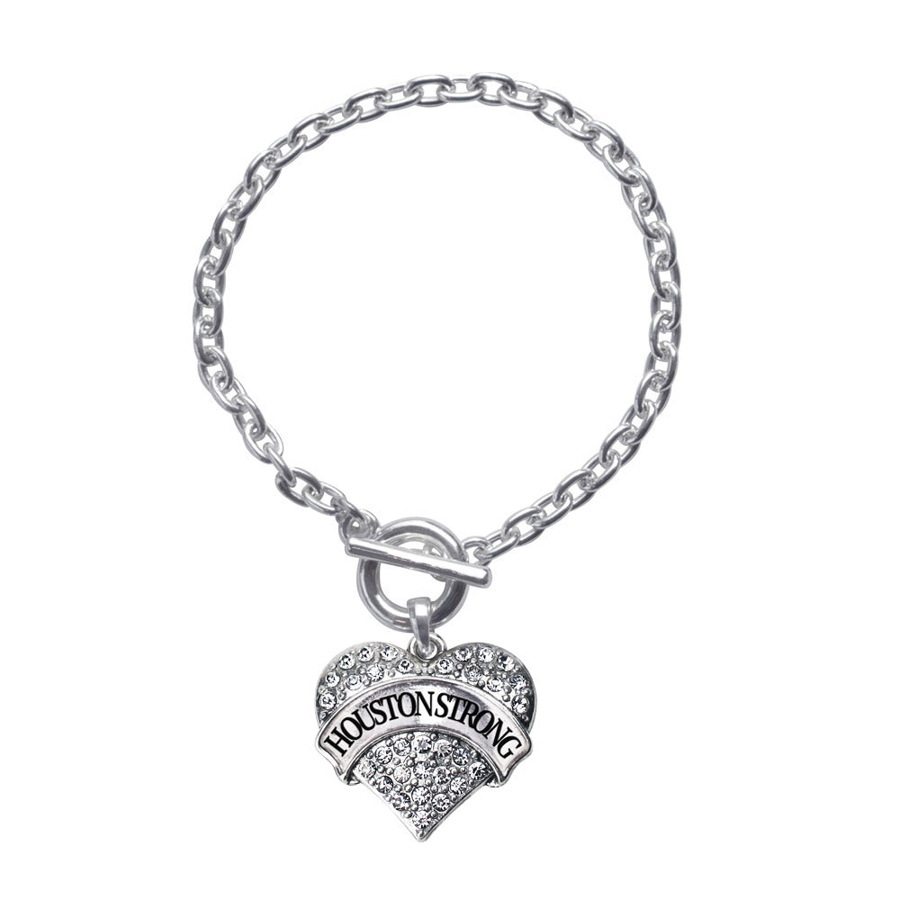 Silver Houston Strong Pave Heart Charm Toggle Bracelet