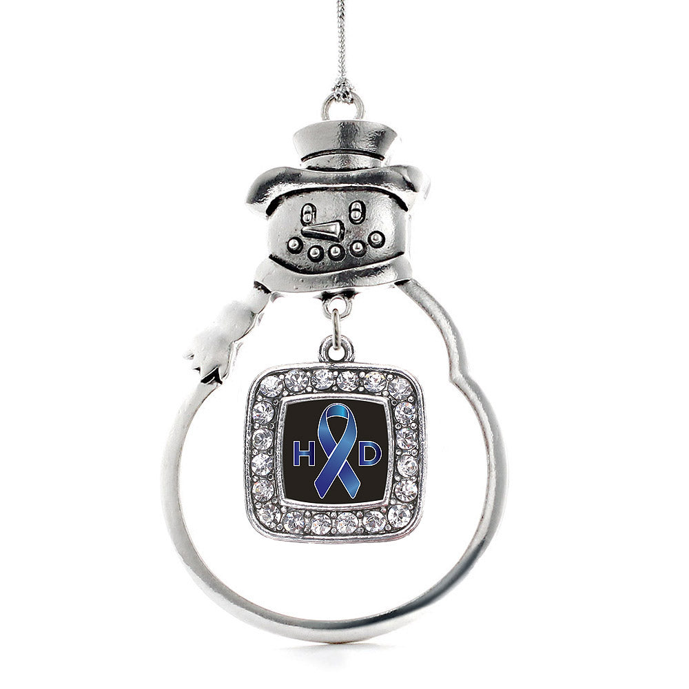 Silver Huntington's Disease Support Square Charm Snowman Ornament