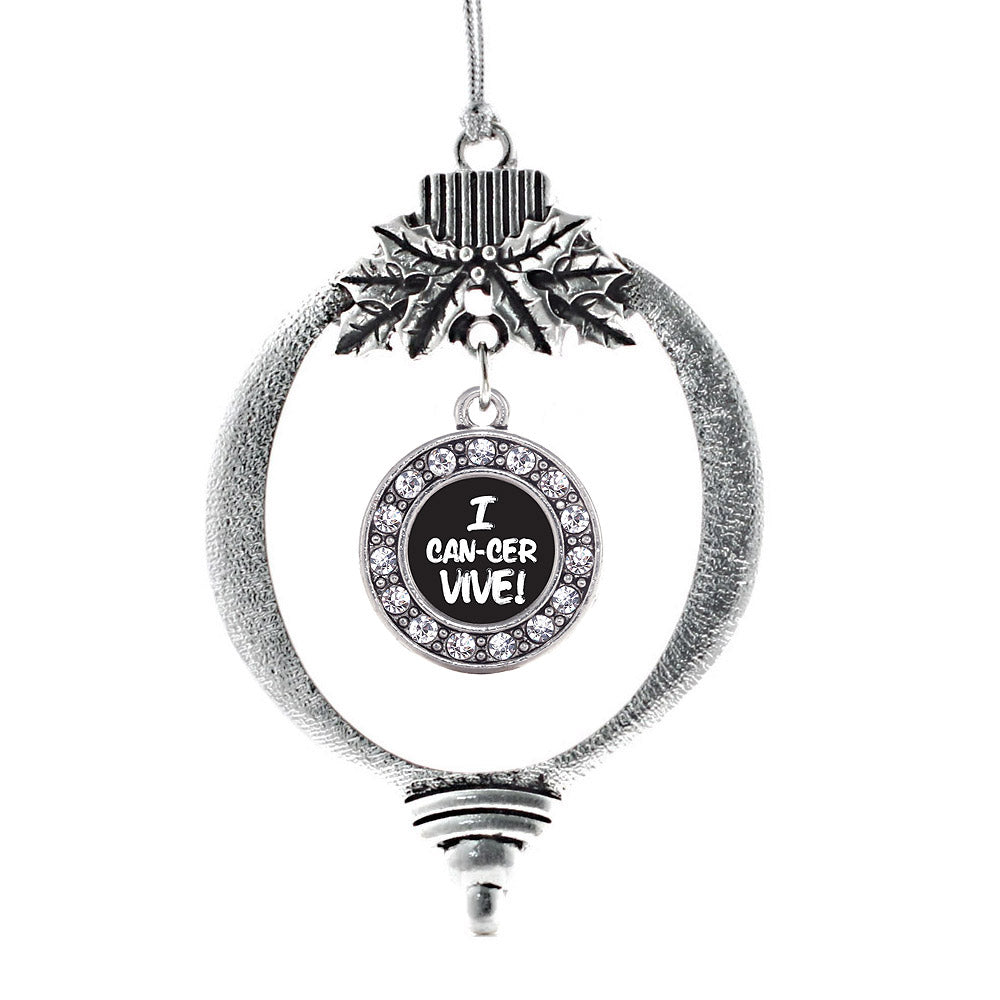 Silver I Can-Cer-Vive Circle Charm Holiday Ornament