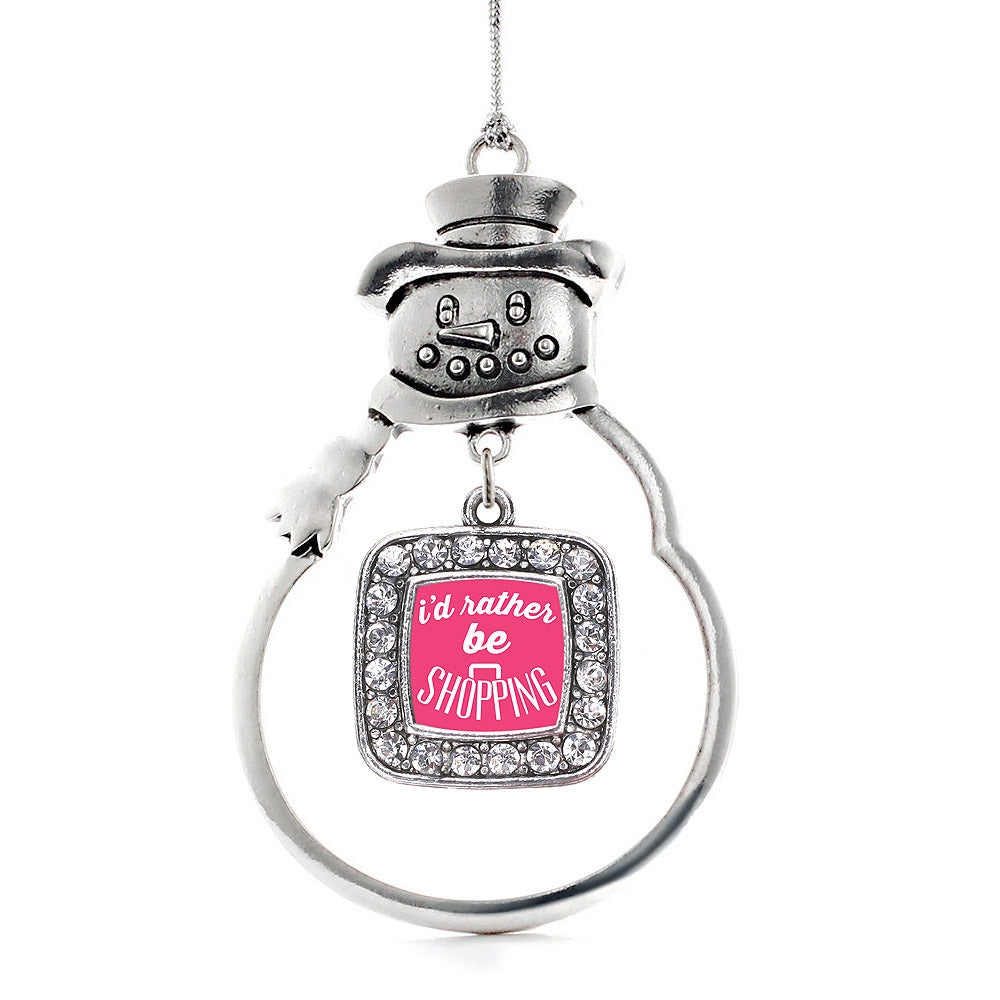 Silver I'd Rather Be Shopping Square Charm Snowman Ornament