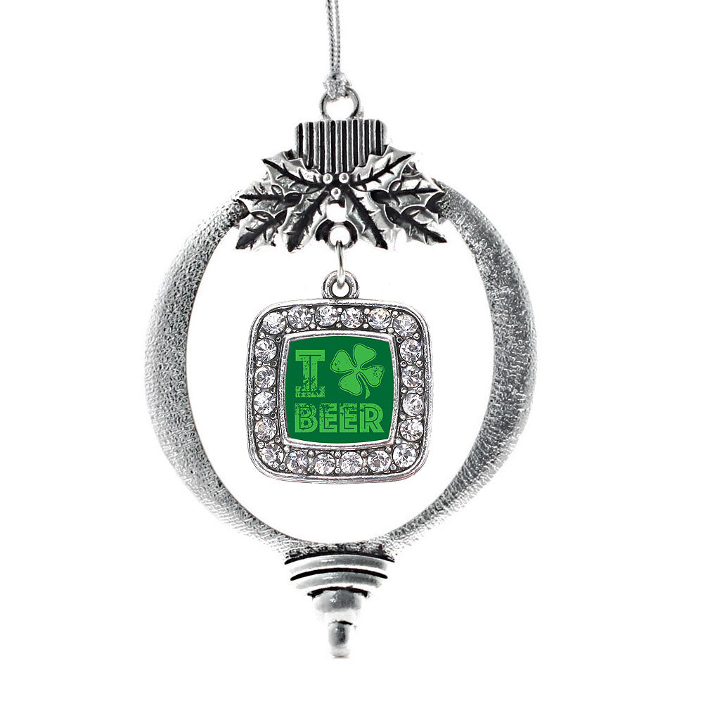 Our sparkling holiday ornament, equipped with a stylish silver rope and the I Love Beer square charm, is crafted from white metal with a silver plated finish and accented with cubic zirconia stones.