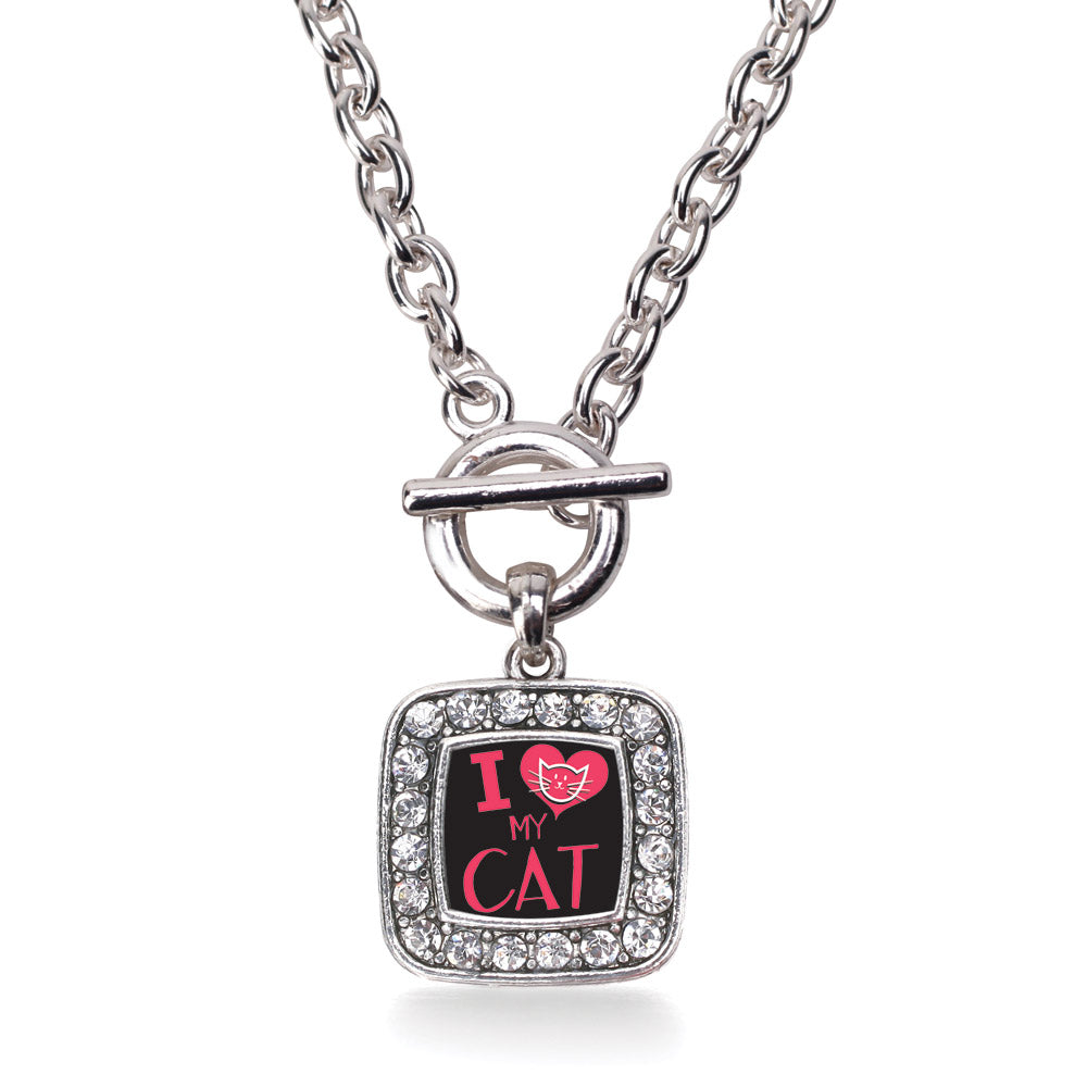 Silver I Love My Cat Square Charm Toggle Necklace