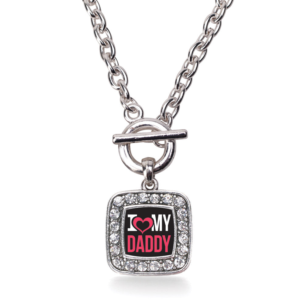 Silver I Love My Daddy Square Charm Toggle Necklace