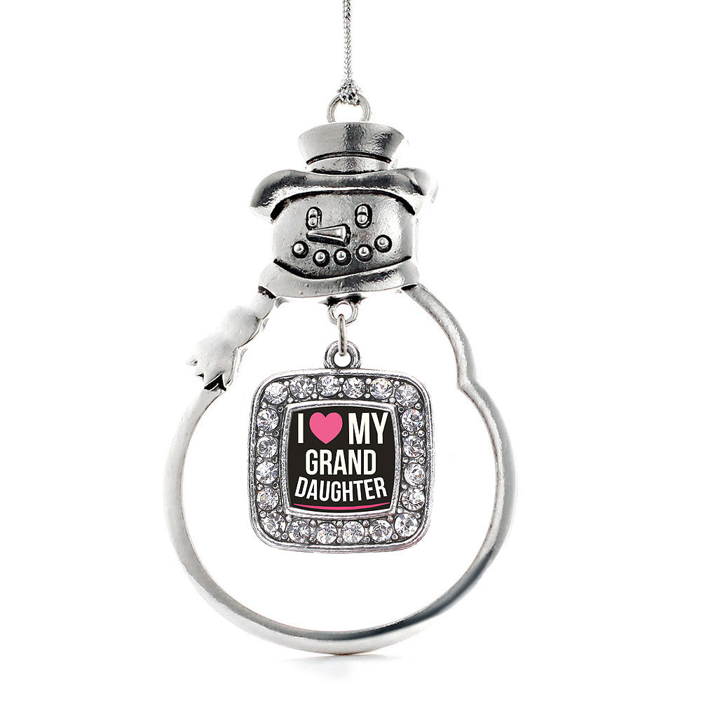 Silver I Love my Granddaughter Square Charm Snowman Ornament
