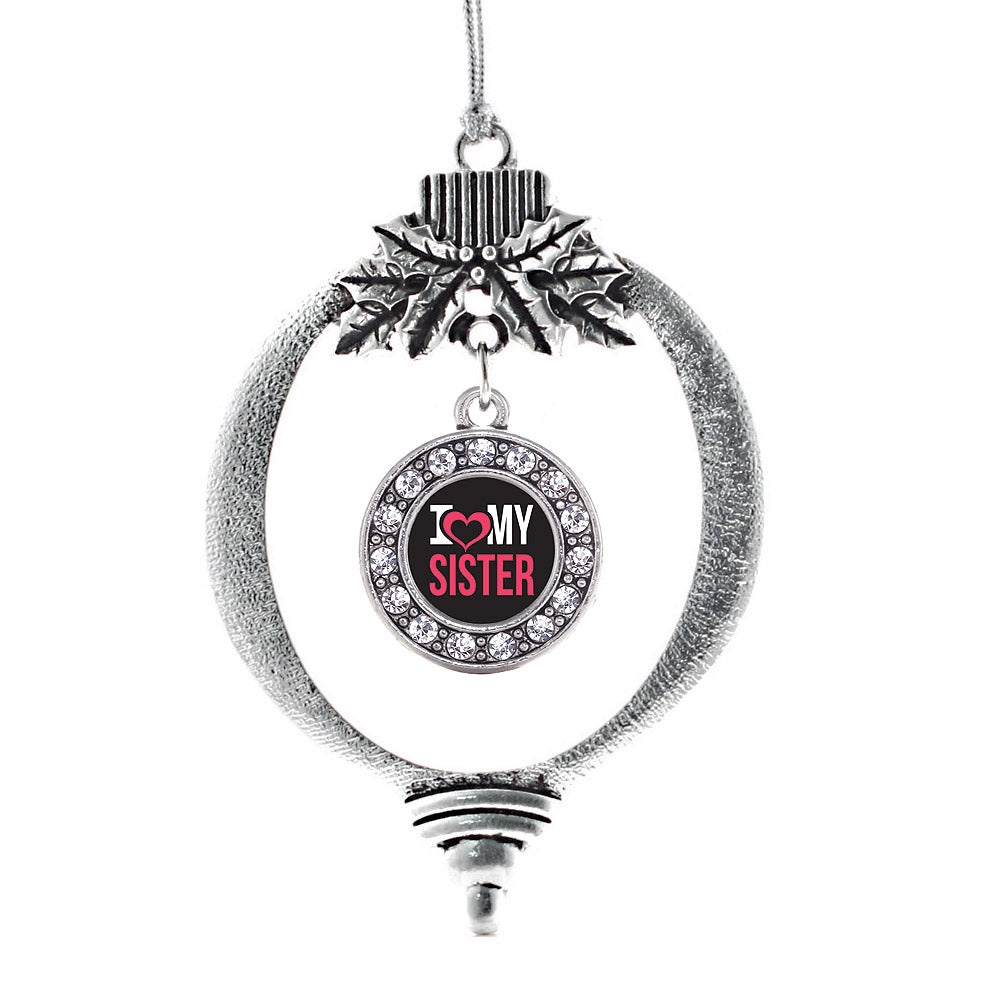 Silver I Love My Sister Circle Charm Holiday Ornament