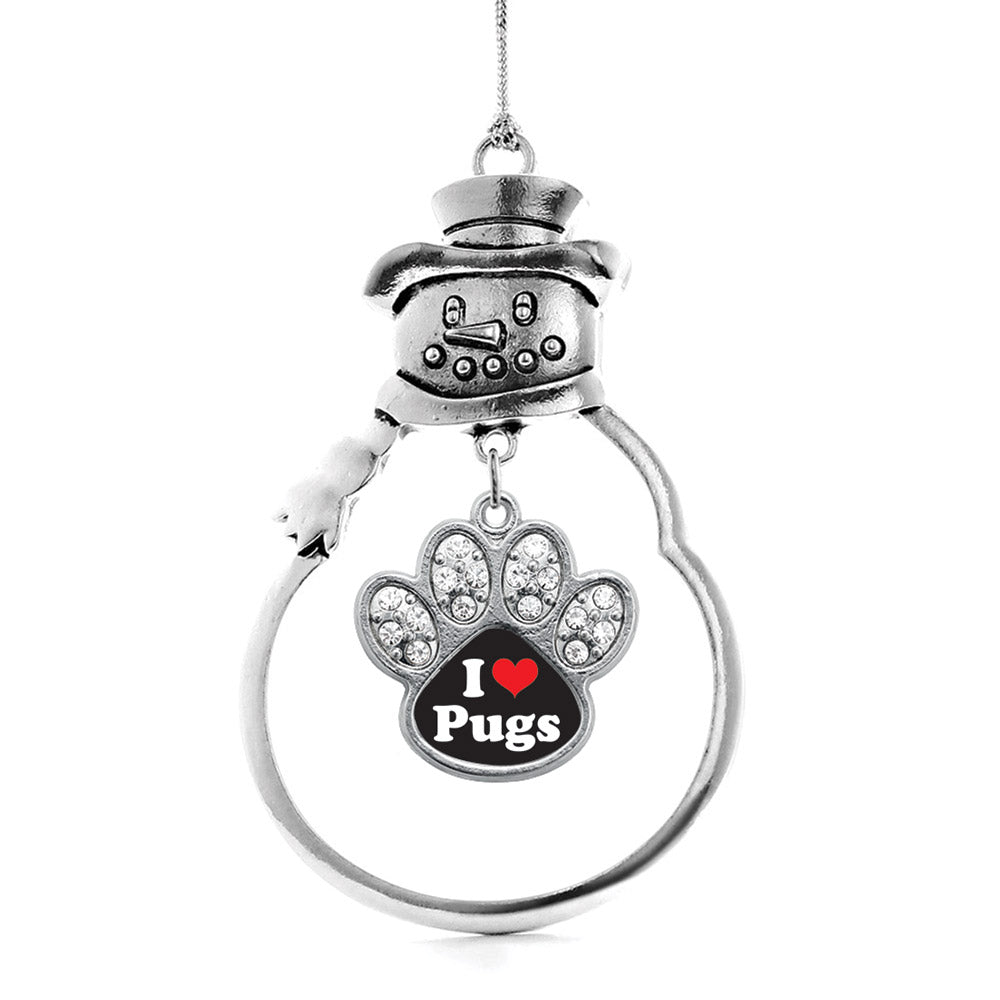 Silver I Love Pugs Pave Paw Charm Snowman Ornament
