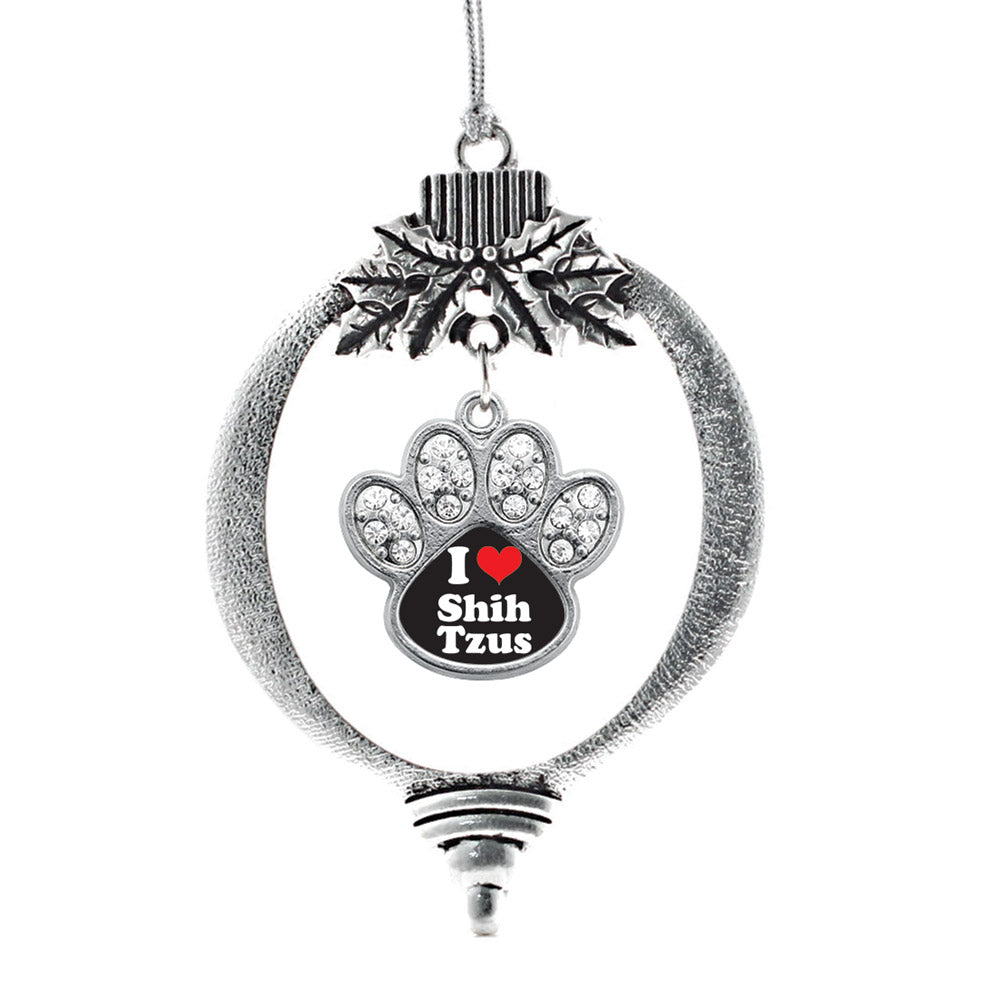 Silver I Love Shih Tzus Pave Paw Charm Holiday Ornament