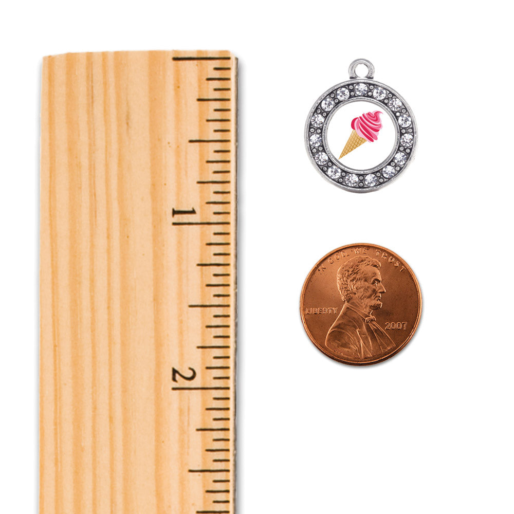 Our sparkling dangle earrings, equipped with a stylish french hook backing and the Ice Cream Cone Lovers circle charm, is crafted from white metal with a silver plated finish and accented with cubic zirconia stones.