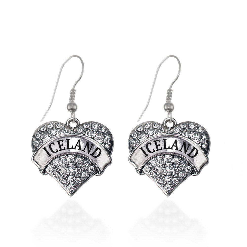 Our sparkling dangle earrings, equipped with a stylish french hook backing and the Iceland pave heart charm, is crafted from white metal with a silver plated finish and accented with cubic zirconia stones.