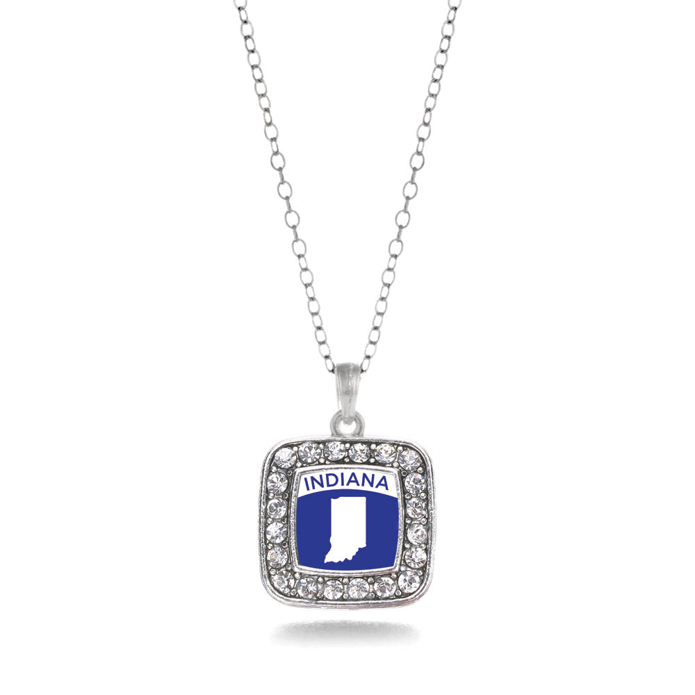 Our sparkling classic necklace, equipped with a stylish lobster claw clasp and the Indiana Outline square charm, is crafted from white metal with a silver plated finish and accented with cubic zirconia stones.