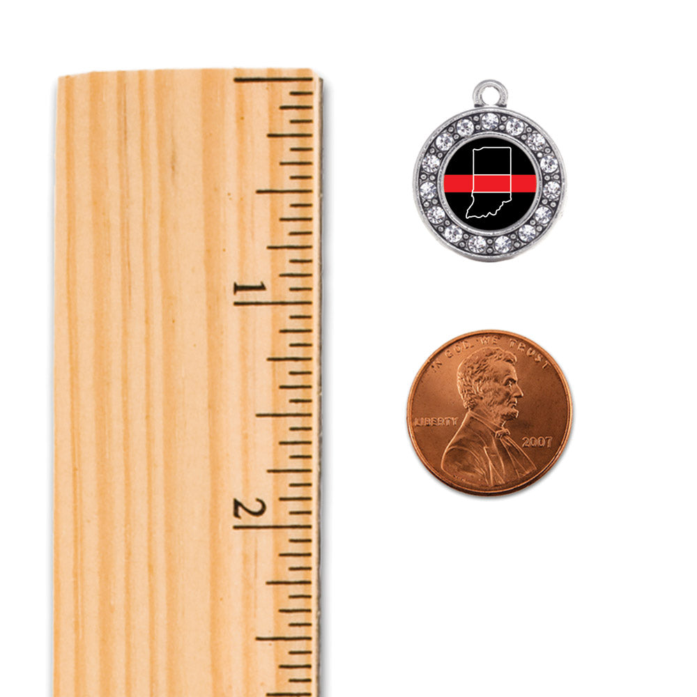 Our sparkling holiday ornament, equipped with a stylish silver rope and the Indiana Thin Red Line circle charm, is crafted from white metal with a silver plated finish and accented with cubic zirconia stones.