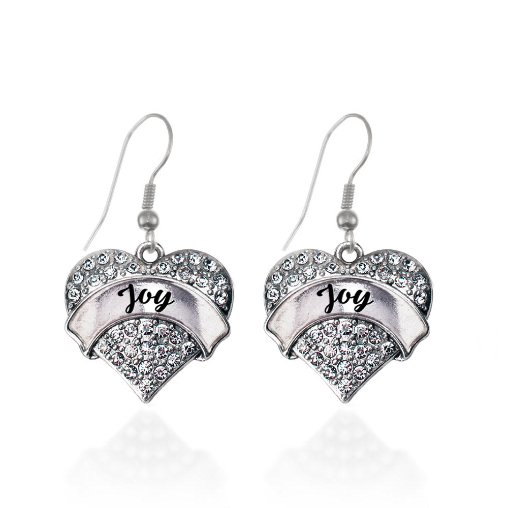 Silver Joy Pave Heart Charm Dangle Earrings