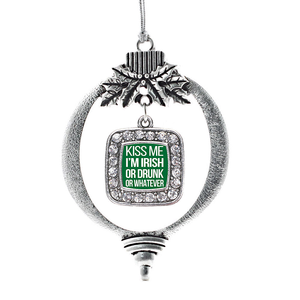 Silver Kiss Me I'm Drunk Square Charm Holiday Ornament