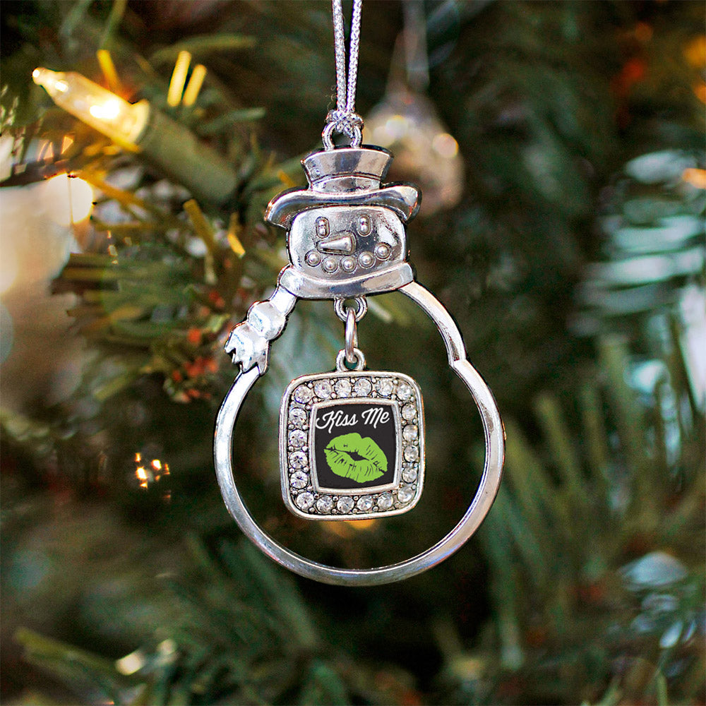 Silver Kiss Me I'm Irish Square Charm Snowman Ornament