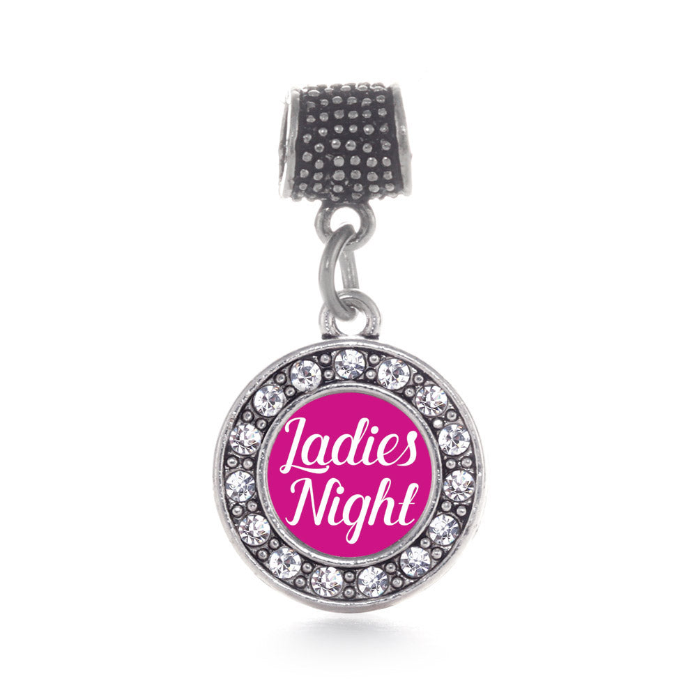 Our sparkling memory charm, equipped with a stylish charm attachment ring and the Ladies Night circle charm, is crafted from white metal with a silver plated finish and accented with cubic zirconia stones.