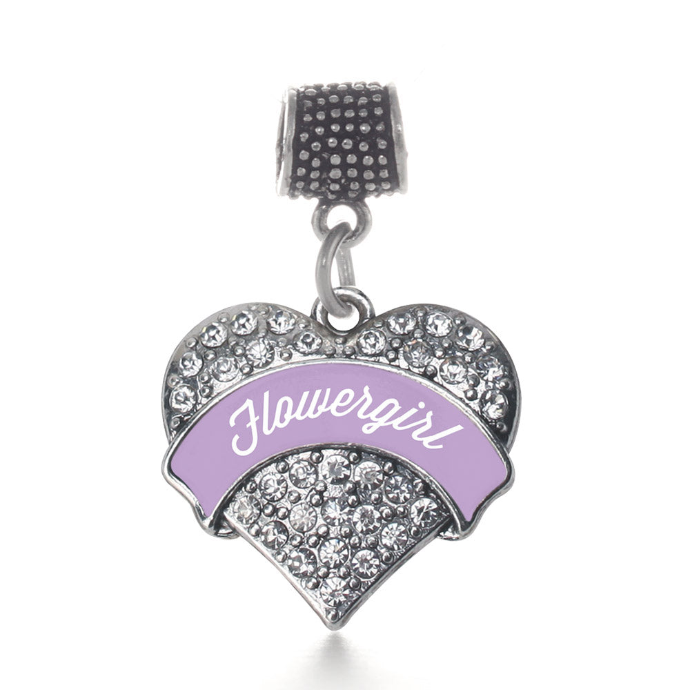 Silver Lavender Flower Girl Pave Heart Memory Charm