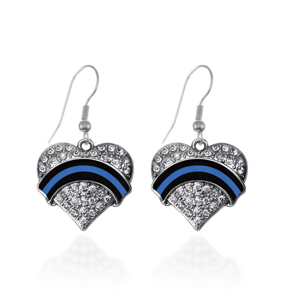 Silver Law Enforcement Support Pave Heart Charm Dangle Earrings