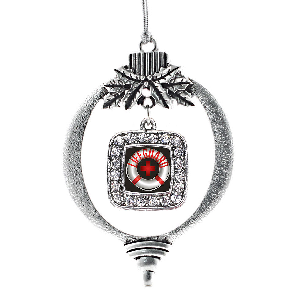 Our sparkling holiday ornament, equipped with a stylish silver rope and the Life Guard square charm, is crafted from white metal with a silver plated finish and accented with cubic zirconia stones.