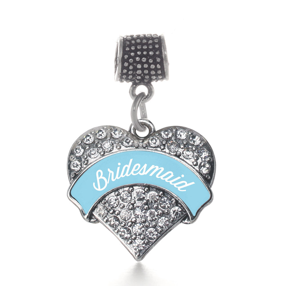Silver Light Blue Bridesmaid Pave Heart Memory Charm