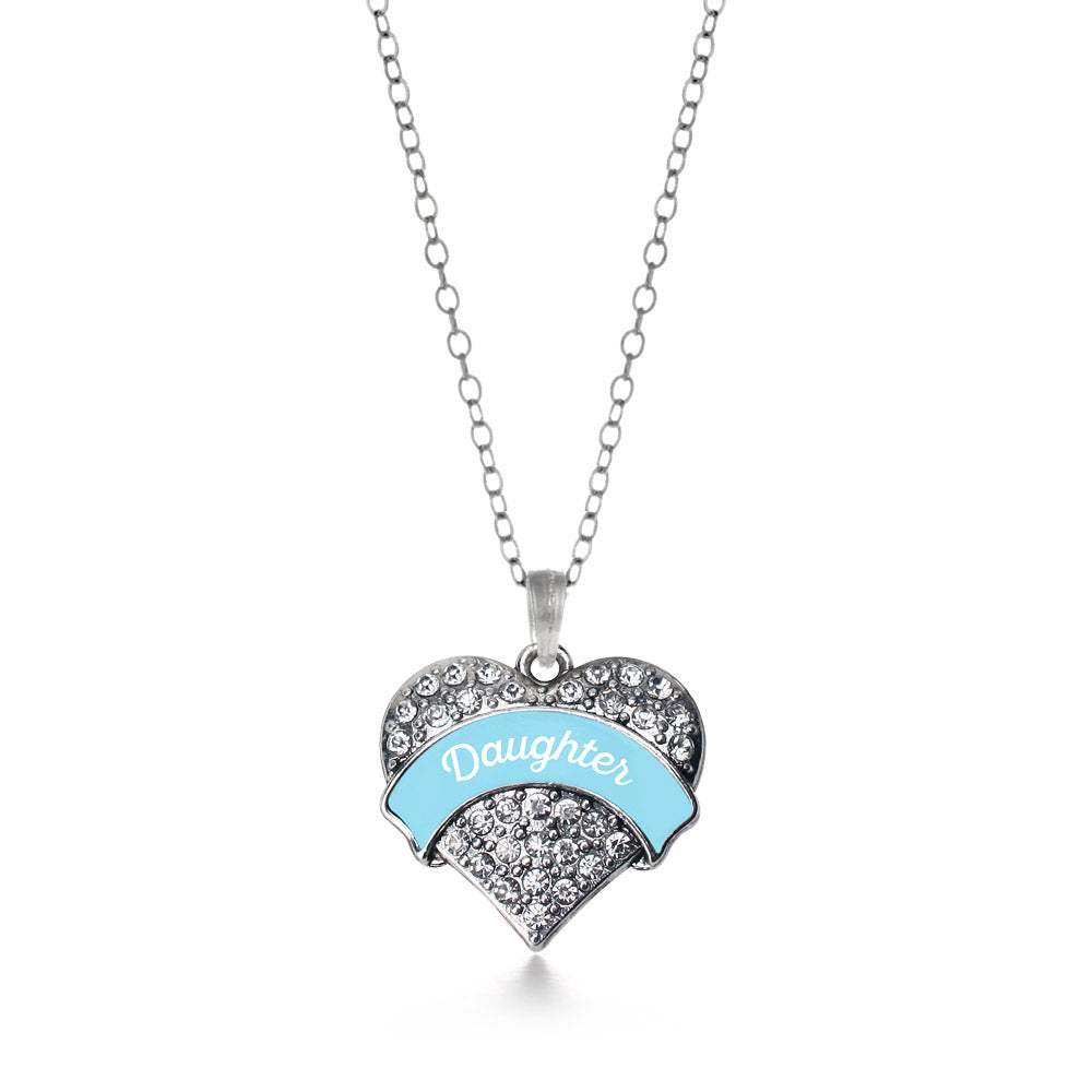 Silver Light Blue Daughter Pave Heart Charm Classic Necklace