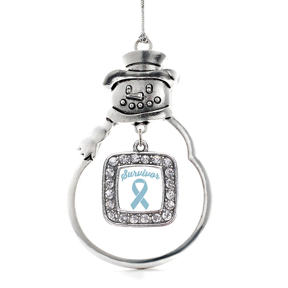 Silver Light Blue Ribbon Survivor Square Charm Snowman Ornament