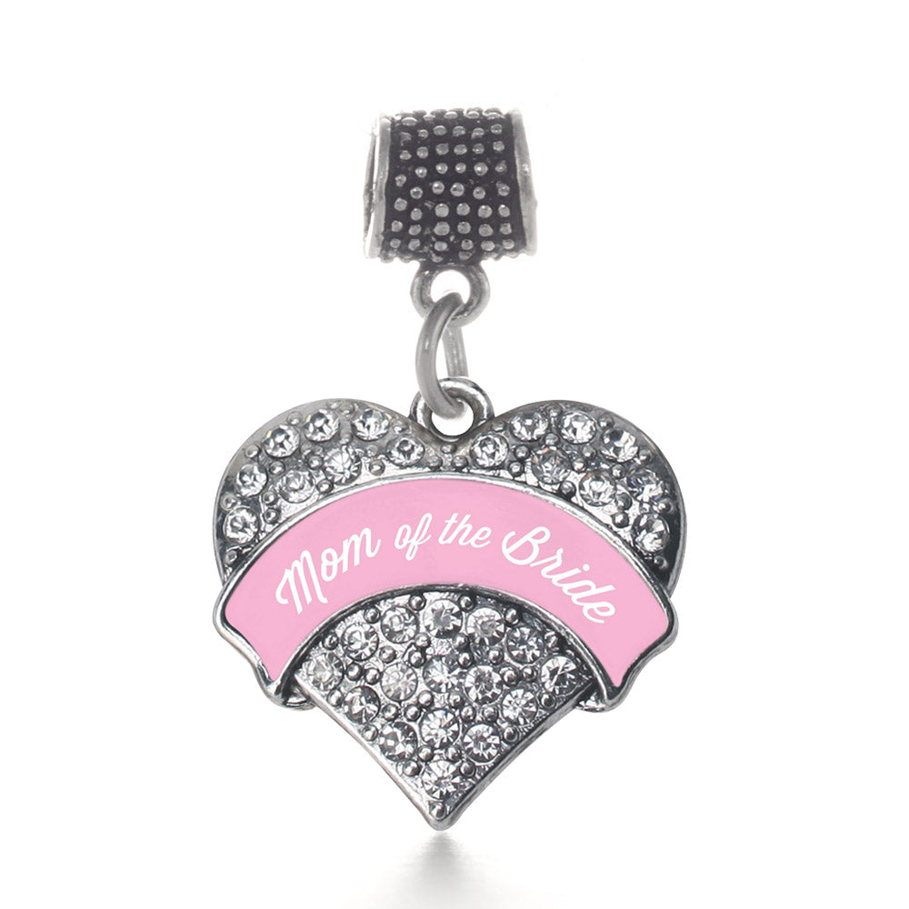 Our sparkling memory charm, equipped with a stylish charm attachment ring and the Light Pink Mom of the Bride pave heart charm, is crafted from white metal with a silver plated finish and accented with cubic zirconia stones.