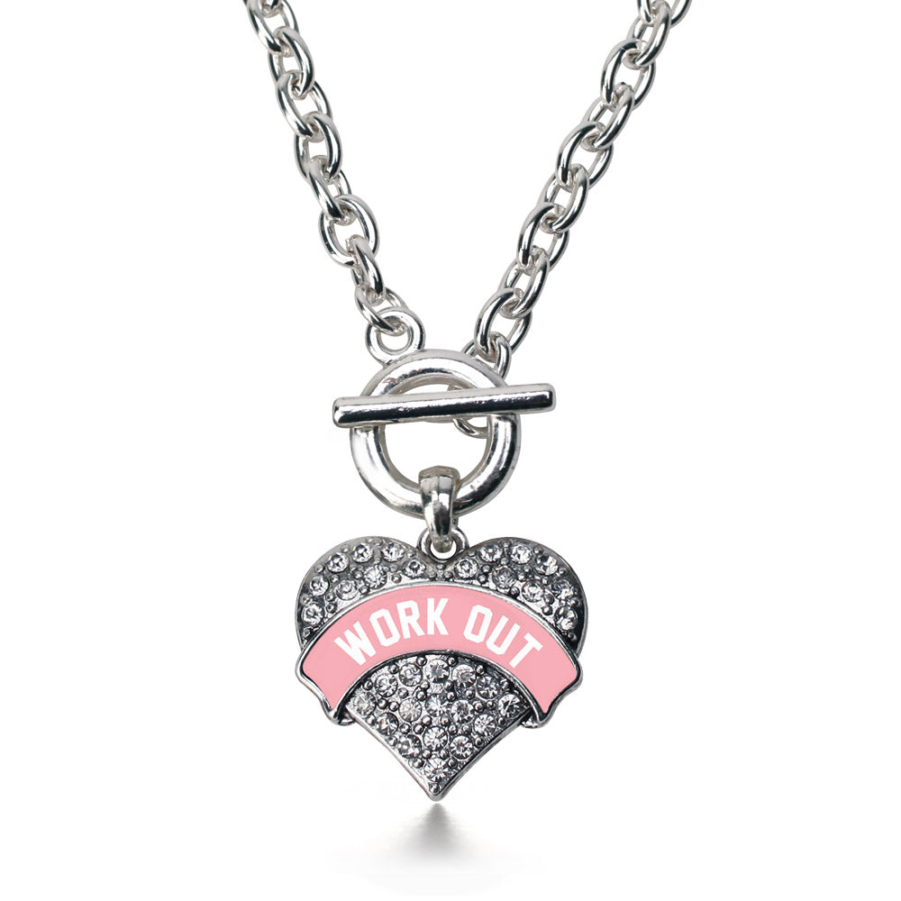 Our sparkling toggle necklace, equipped with a stylish toggle clasp and the Light Pink Work Out pave heart charm, is crafted from white metal with a silver plated finish and accented with cubic zirconia stones.