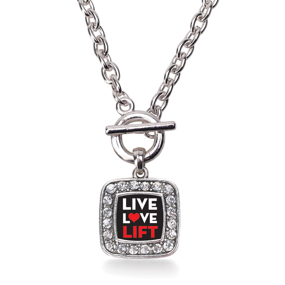 Silver Live, Love, Lift Square Charm Toggle Necklace